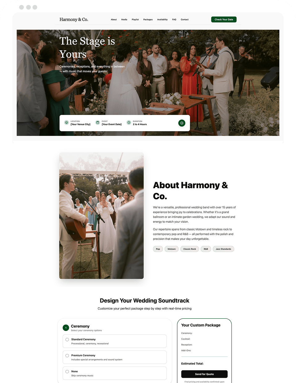 Launch a refined site fast with built-in tools like payments, scheduling, and email marketing. Do it yourself or get help from our expert team.