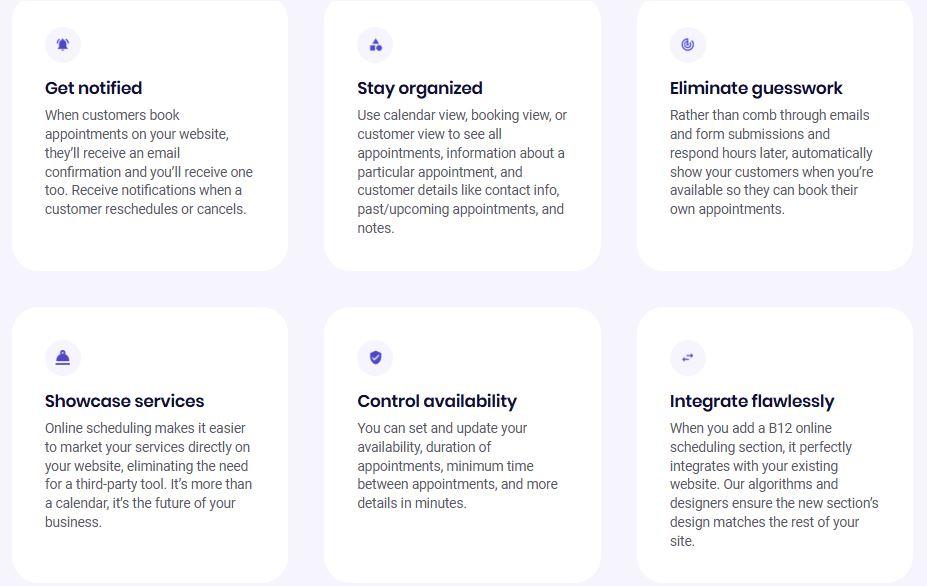 - Aside from the design and content draft, B12 also equips you with the built-in tools you need to grow your practice. From SEO features that improve your search engine rankings to online scheduling for a discovery call, B12 covers the essentials for visibility and client engagement. You’ll also get payments, invoicing, client intake forms, and email sign-ups to grow your list, all included in one platform.
