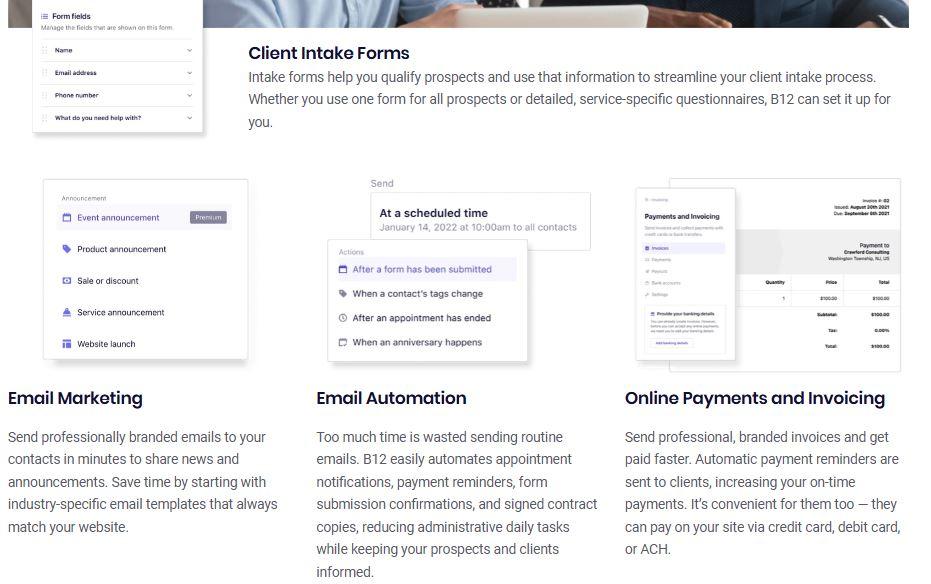 Let B12 set up your professional online presence with everything you need to attract, win, and serve clients.