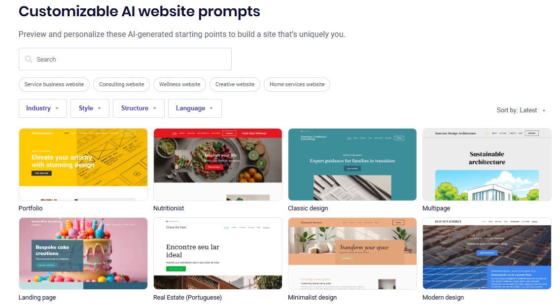 B12 gives you a full landing page or website draft right away, so you’re not starting from zero. You can either feed your prompt on B12’s homepage or choose a landing page template from its website prompt gallery or industry library.