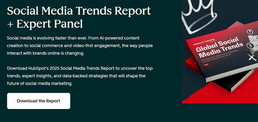 Here’s a perfect example: Hubspot’s CTA on its social media trends report landing page is positioned strategically above the fold.
